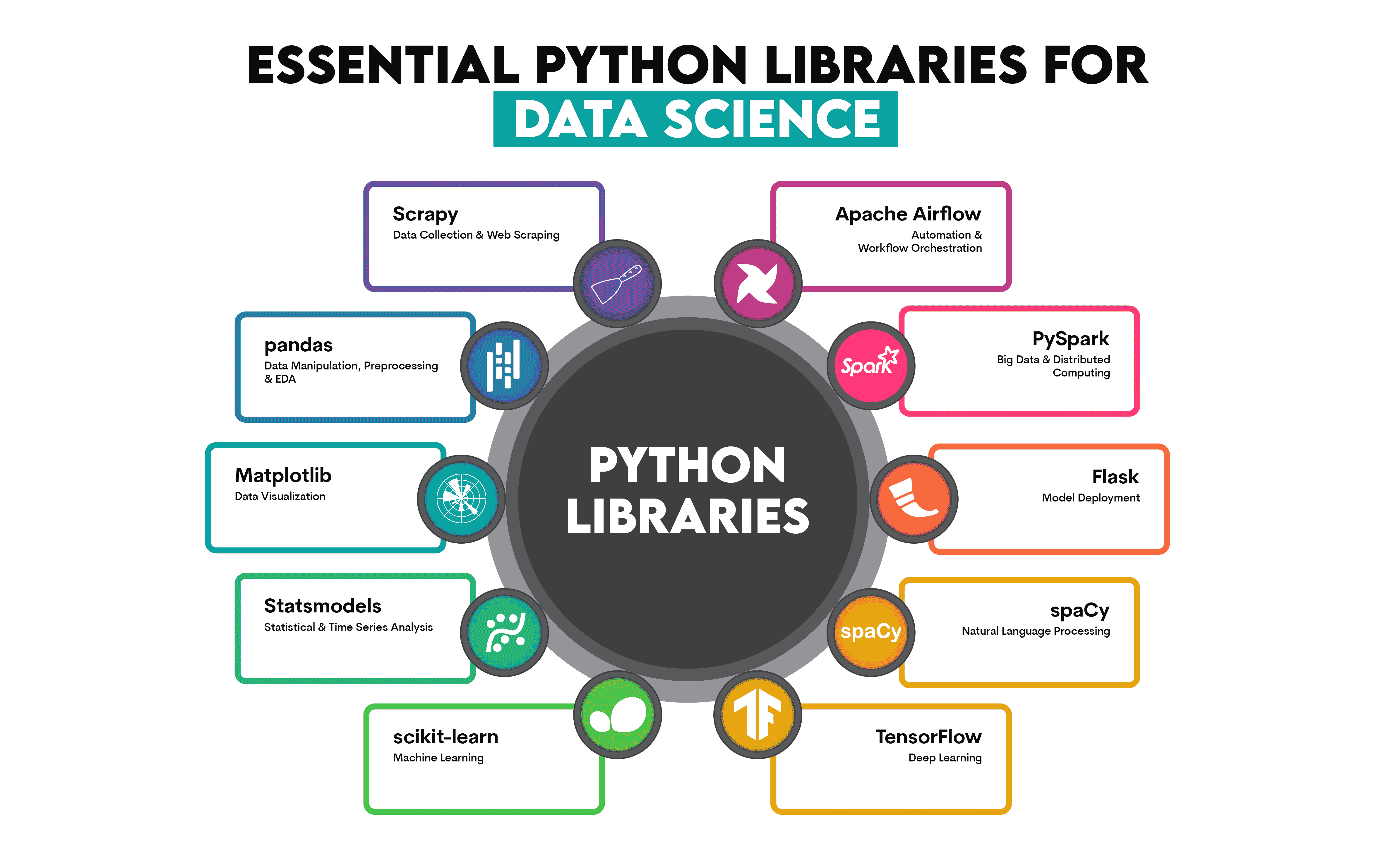 Python libraries are the secret weapons of data science professionals. From handling data with Pandas and NumPy to building intelligent models with TensorFlow and PyTorch, these libraries empower you to turn raw information into meaningful insights.