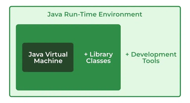 | JRE | Java Runtime Environment | Contains JVM + libraries needed to run code |